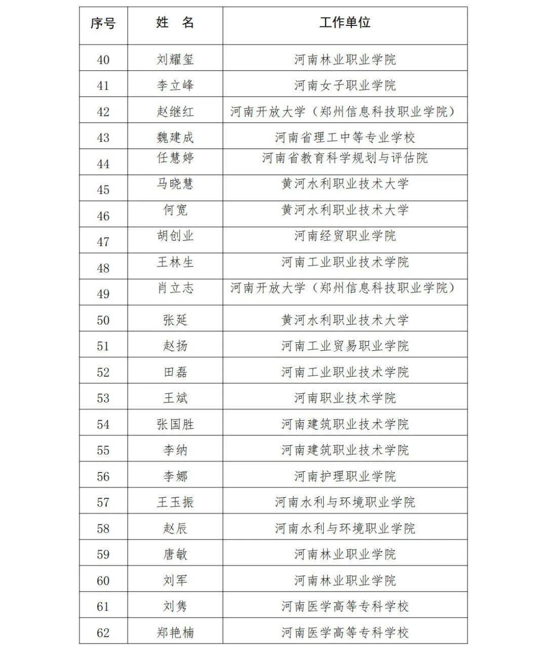 关于2025年河南省职业教育教学专家推荐人选的公示根据《河南省人力资源和社会保障厅 河南省教育厅 河南省财政厅关于开展2025年河南省职业教育教学专家评选工作的通知》(豫人社函〔2025〕165号)要求,经基层推荐、专家评审,确定张梦宇等66名同志为2025年河南省职业教育教学专家推荐人选,现予以公示。